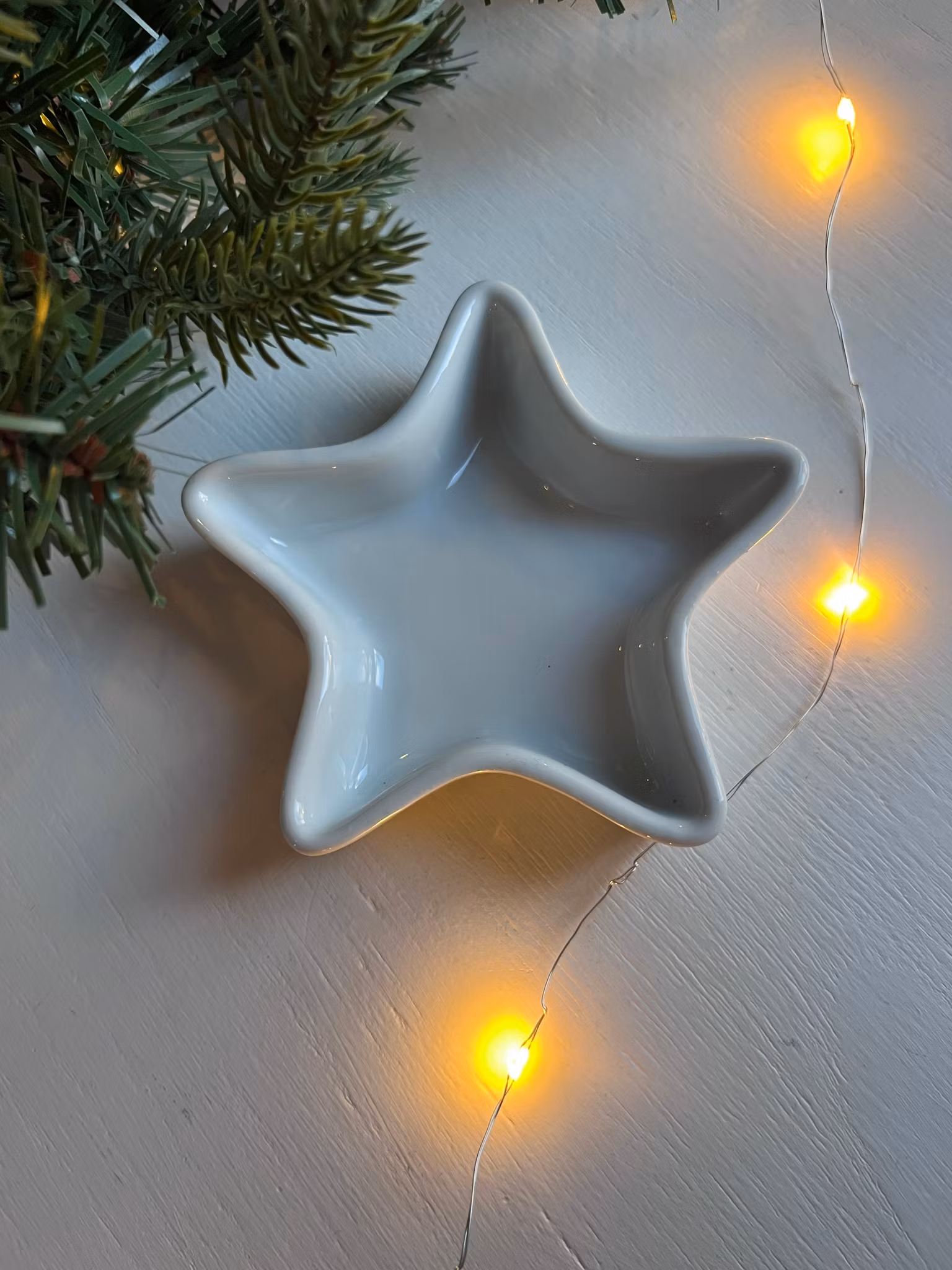 Denne søte stjerneskålen i hvit porselen passer perfekt som matskål, godbitskål eller bare som juledekor i buret.