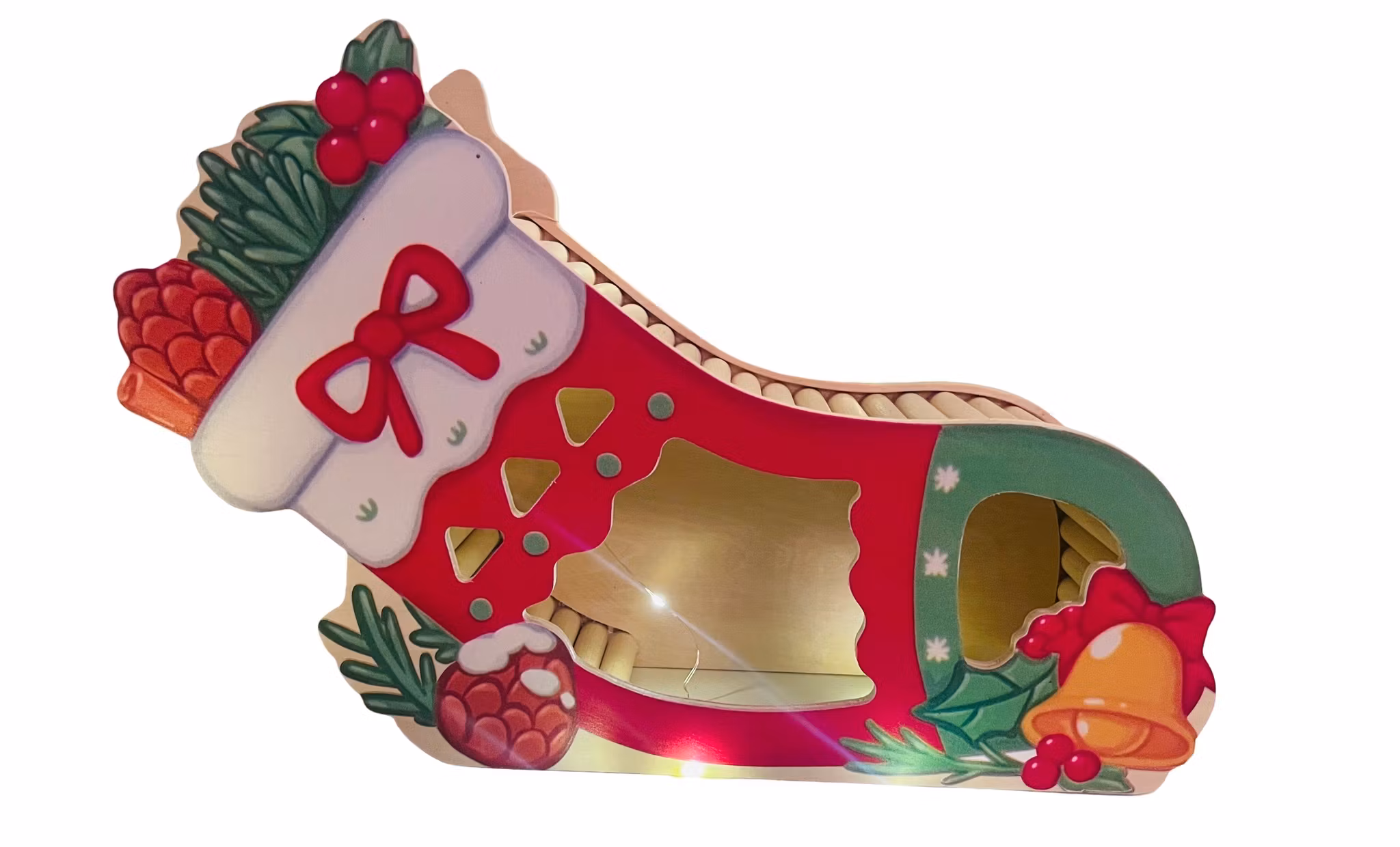 Denne watchboxen er utformet som en julestrømpe. Perfekt for små nysgjerrige hamstre som elsker å gjemme seg og utforske.