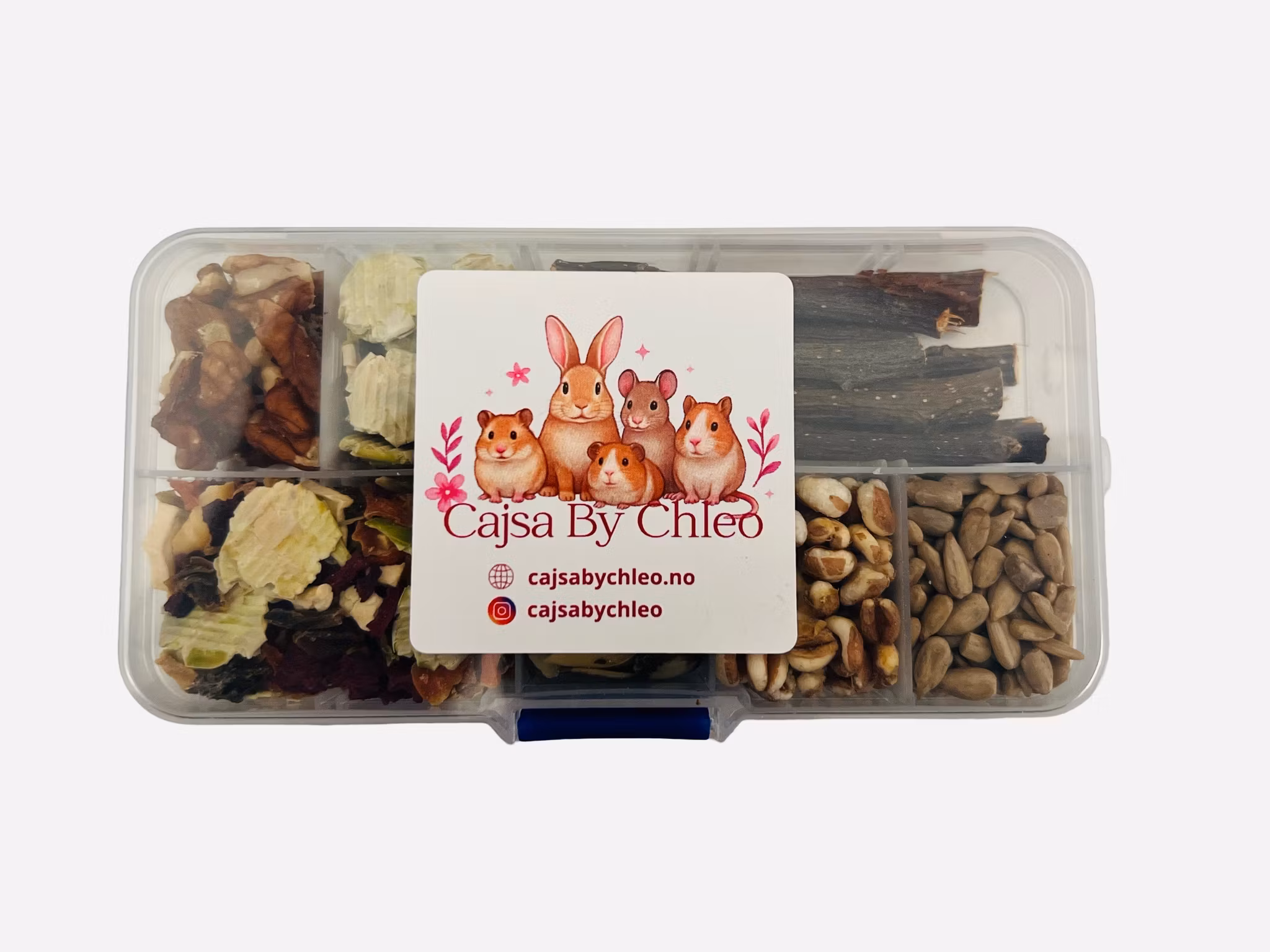 Denne lille snackboksen er perfekt for deg som vil gi hamsteren eller smådyret ditt litt ekstra godt – med variasjon, kvalitet og kontroll på mengdene. Hver boks inneholder seks ulike snacks fordelt i egne rom, og passer både som smakstest, belønningspakke eller gave.
